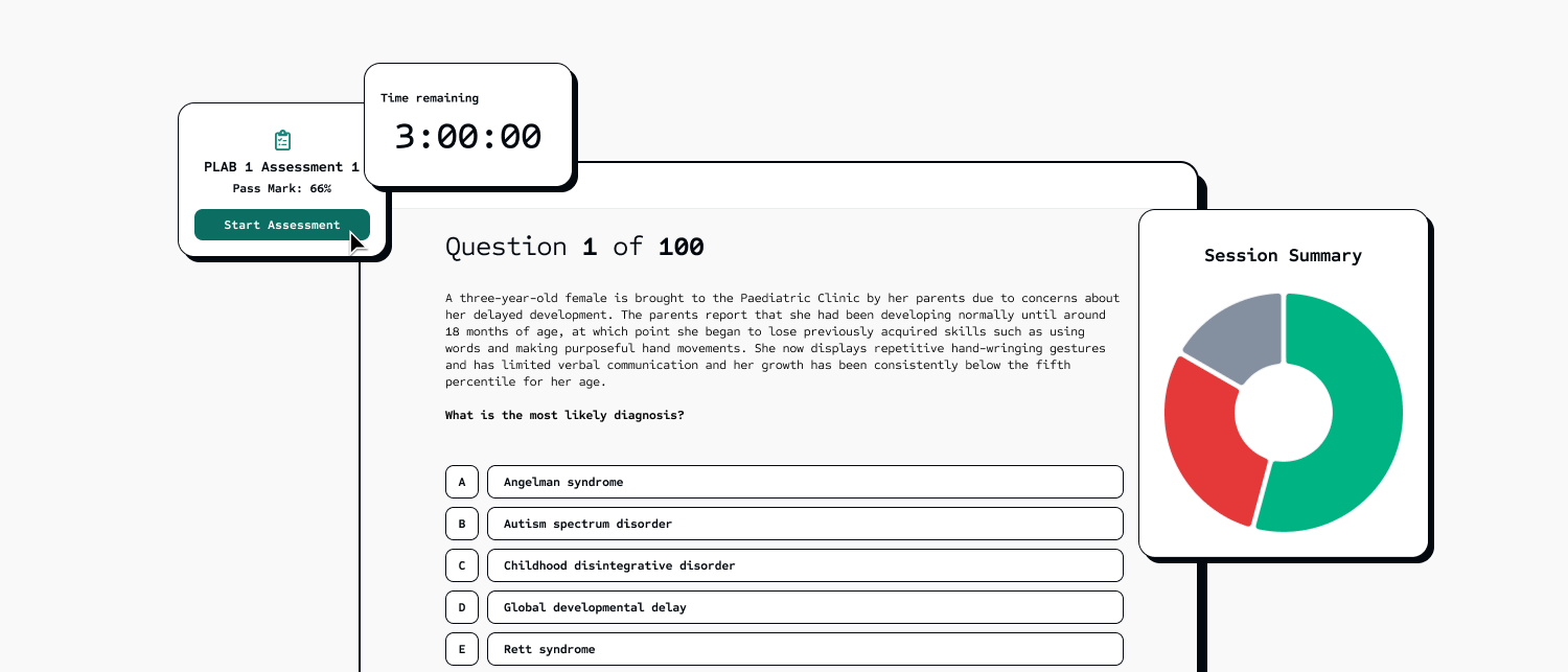 You’ll answer 180 single best answer (SBA) questions over the course of three hours. Each question presents a brief clinical scenario, and you’ll need to choose the most appropriate response from five possible options.